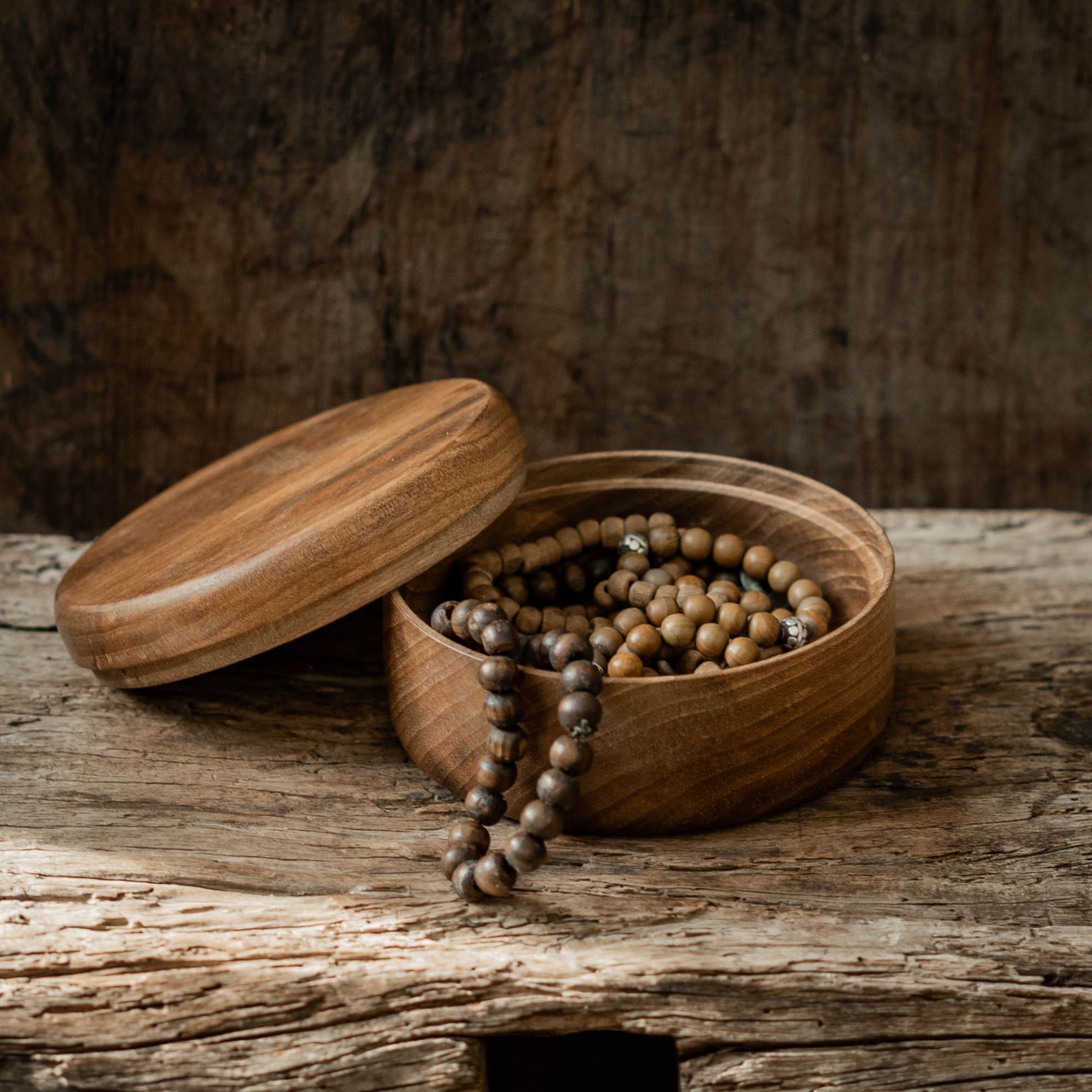 Boîte ronde en noyer – simplicité et caractère brut